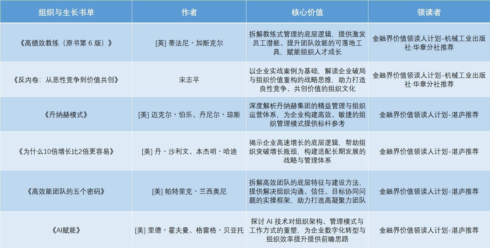 基于长期深耕行业的观察与一线实践的洞察,金融界悦读深刻发现:一本好书在金融机构中的价值,从来不止于个人书桌前的沉淀,更能成为决策者的战略罗盘、专业者的能力利器、服务者的情感纽带、管理者的文化基石。正是这份洞察,推动今年的书单完成理念升级,从“推荐好书”升级为“解决问题”。