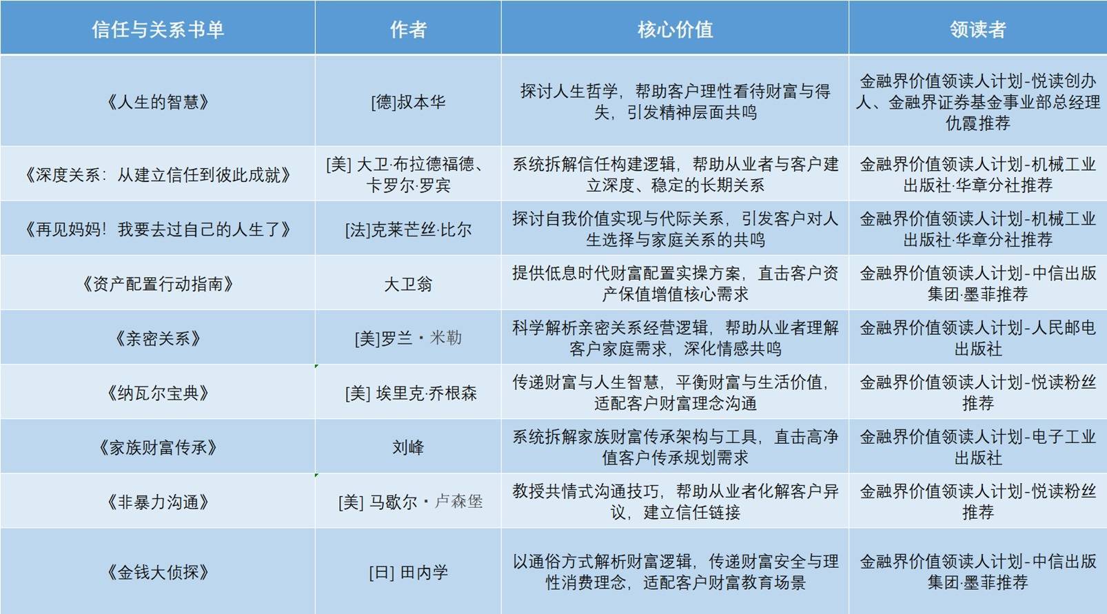 金融服务的本质,是人与人的信任链接。本维度紧扣高净值客户、机构客户的核心关切,围绕财富安全、家族传承、子女教育、健康管理等切身议题,收录兼具人文温度与专业厚度的优质读物。不同于单纯的产品推销,这些书籍以深度内容引发情感共鸣,传递正向价值理念,成为客户经理、理财师与客户之间的“情感桥梁”,既彰显机构的前瞻视野,更能夯实长期信任根基,让服务更有温度、更有深度。